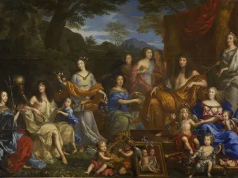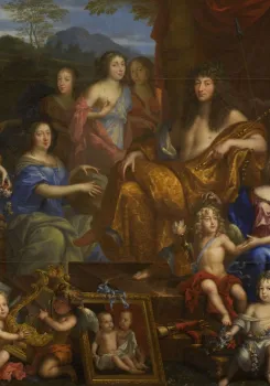 Philippe d’Orléans, frère du Roi, souhaitant embellir son château de Saint-Cloud, demande à Jean Nocret un portrait de la famille royale. L’artiste peint La famille de Louis XIV en 1670 représentée en dieux gréco-romains. Louis-Philippe fait entrer ce tableau dans les collections du château de Versailles.