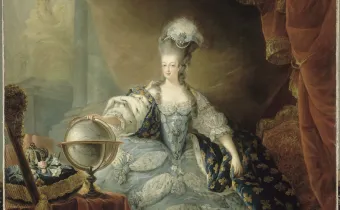 Dans ce portrait officiel, Louis XVI est représenté de la même manière que Louis XIV dans son célèbre portrait de Hyacinthe Rigaud. Tous les symboles du pouvoir et de la puissance sont présents.